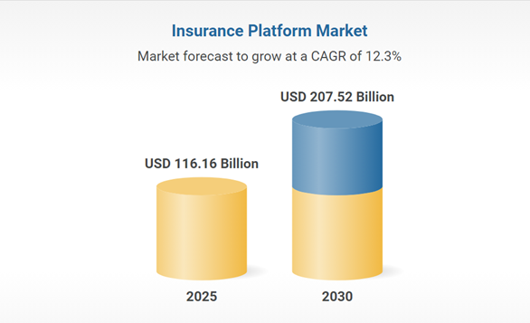 The insurance platform market is forecasted to expand from USD 116.16 billion in 2025 to USD 207.52 billion by 2030, growing at a CAGR of 12.3%. Key drivers include digital transformation trends, rising demand for personalized insurance policies, and the increasing adoption of cloud-based solutions for enhanced scalability and efficiency. Insurers are utilizing AI, data…